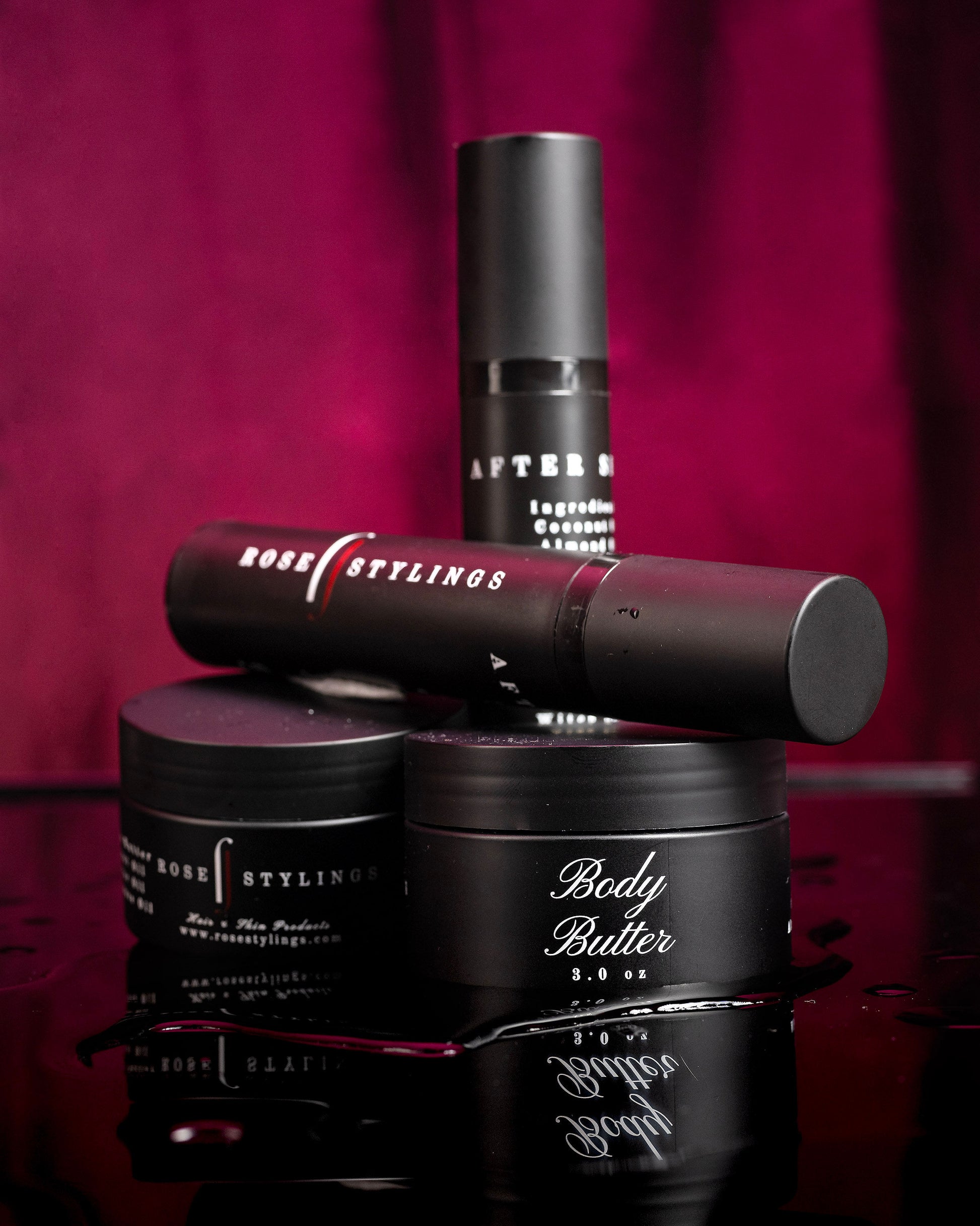Body Butter: Made with Sweet Almond Oil, Grapseed Oil, Coconut Oil, Castor Oil, Avocado Oil, Fragrance Oil, Shea Butter, Mango Butter and Arrowroot Starch, this butter outperforms any lotions you’ve ever tried and leaves you skin feeling incredible.